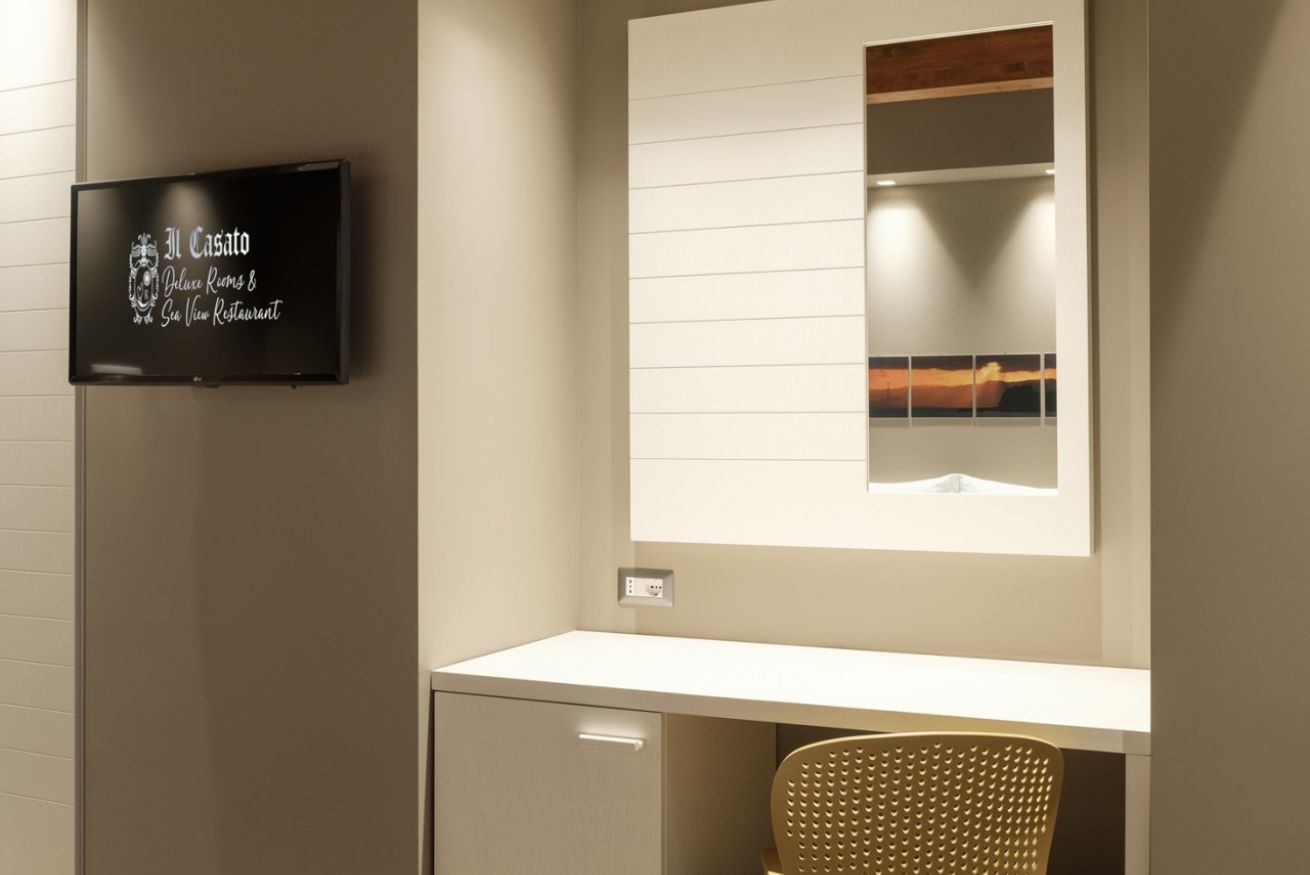 Our standard Deluxe rooms have a slightly wider surface, some of them have a a very comfortable armchair that houses a single bed for a thirth person. All the windows overlook the quiet pedestrian street that crosses Chianalea. In room services: air conditioning / heating, safe, bathroom courtesy set, slippers, hair dryer, minibar. It is strictly forbidden smoking in the room. Pets not allowed